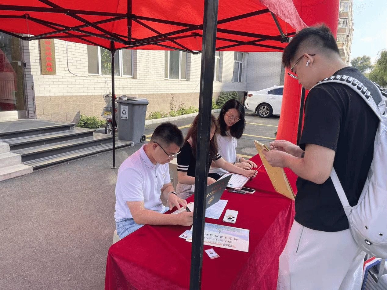 研究生院党员师生组成志愿者服务队,设立“党员先锋岗”,为广大研究生新同学提供志愿服务。