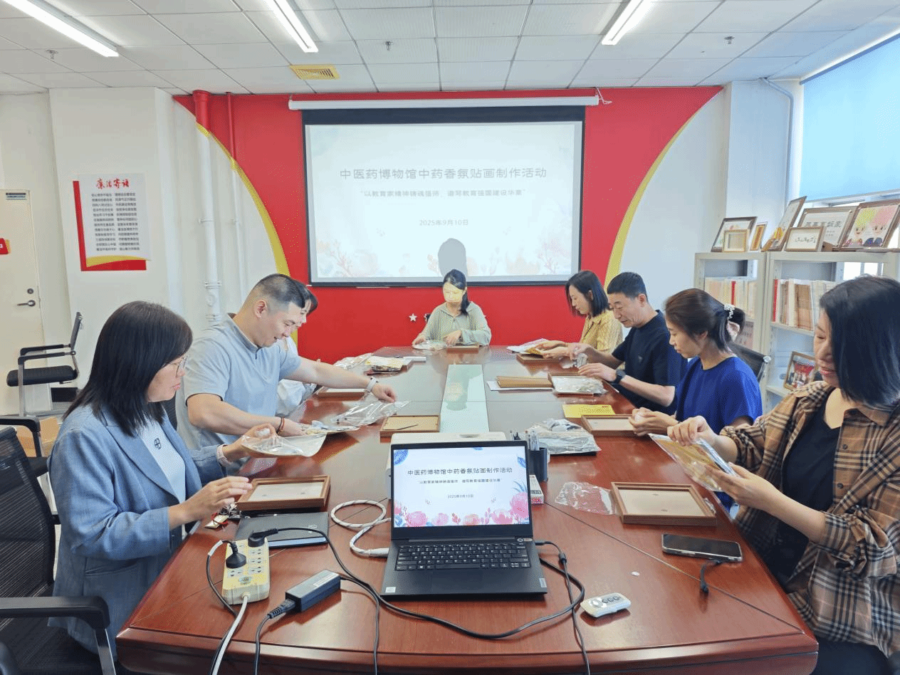 9月10日上午,中医药博物馆为庆祝我国第41个教师节,全体馆员在综合楼1933室举办中药香氛贴画制作活动。