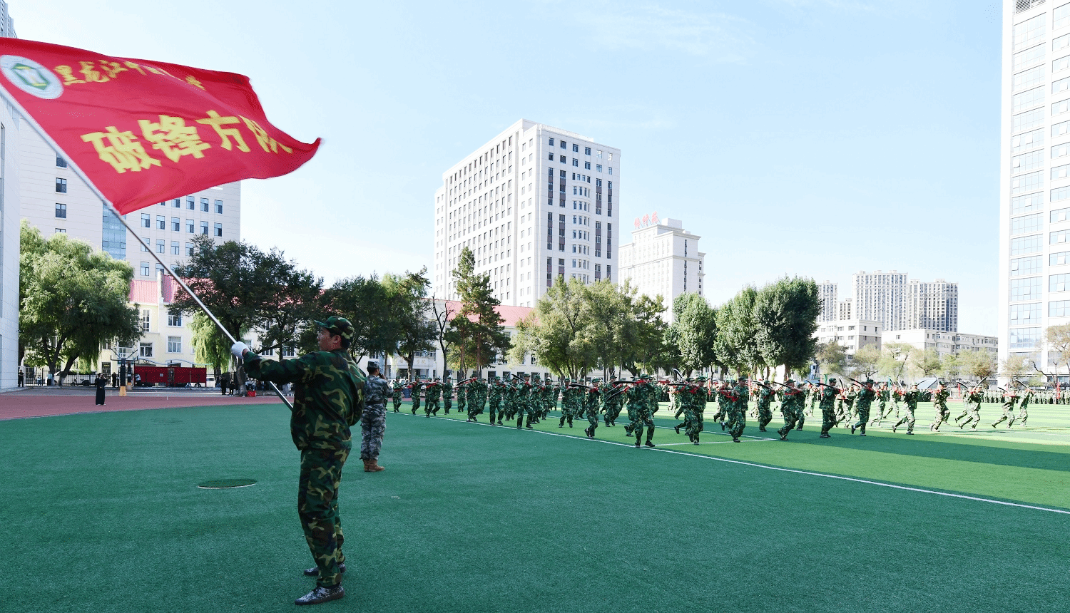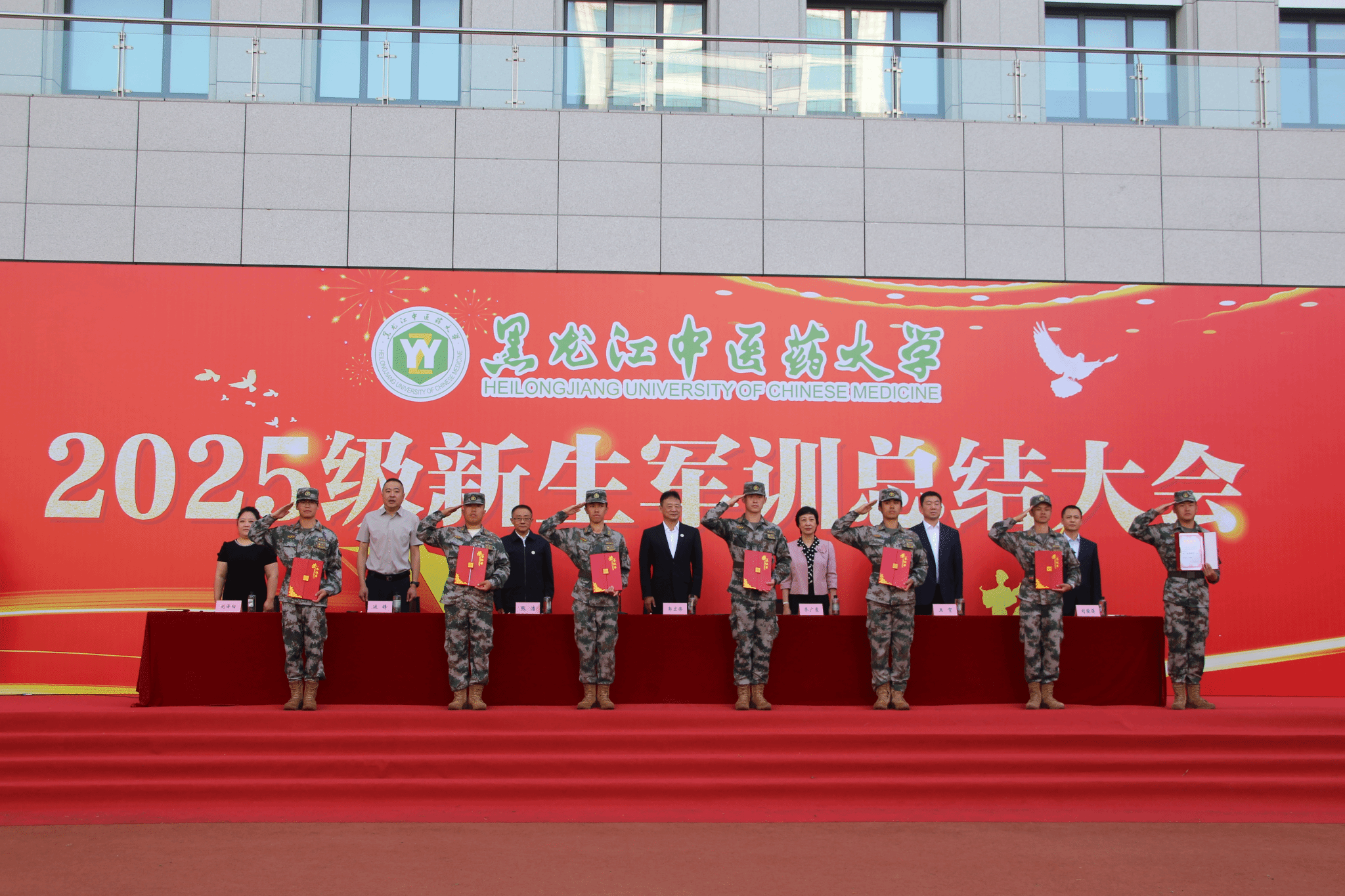 张浩在讲话中强调,军训不仅是锤炼体魄,规范言行的必修课,更是传承抗战精神、砥砺青春担当的实践课。希望同学们将军训收获融入学业,将忠诚品格转化为强国有我的使命担当,将淬炼的优良作风转化为勤学笃行的持久动力,保持奋斗“拼”劲和“闯”劲,努力成长为德智体美劳全面发展,既有坚定理想信念又有扎实专业功底,既能继承传统又能开拓创新的优秀中医药人才,为中医药事业守正创新贡献力量。
