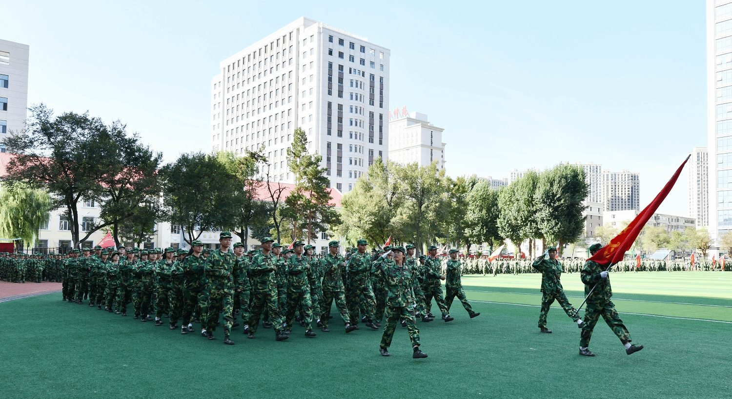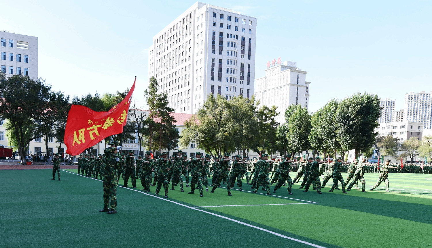 9月13日下午,yl6809永利官网2025级学生军训总结大会在体育场隆重举行。校长郭宏伟,校党委副书记、工会主席乔广霞,副校长、党委常委张浩出席大会并在主席台就座。