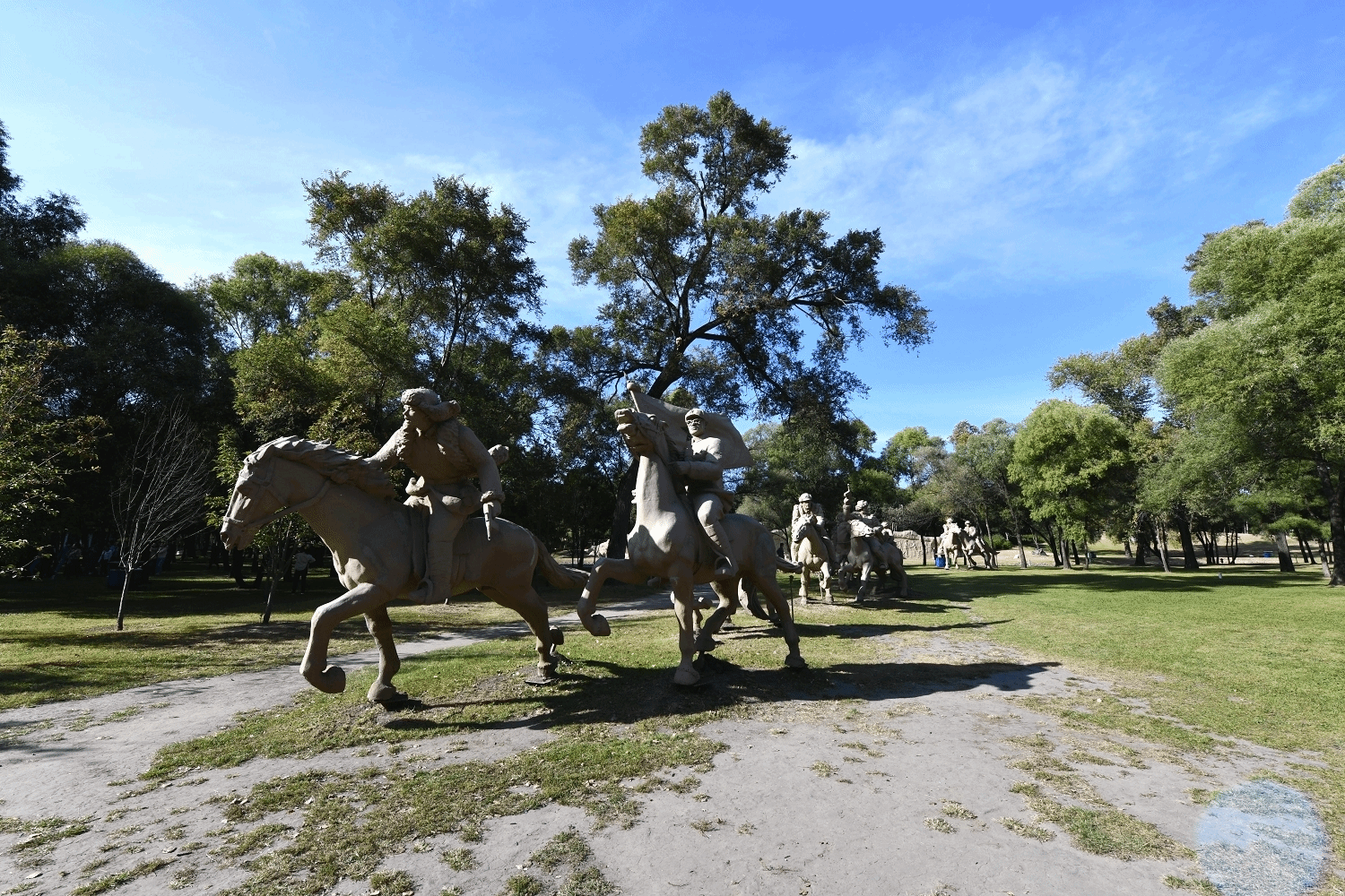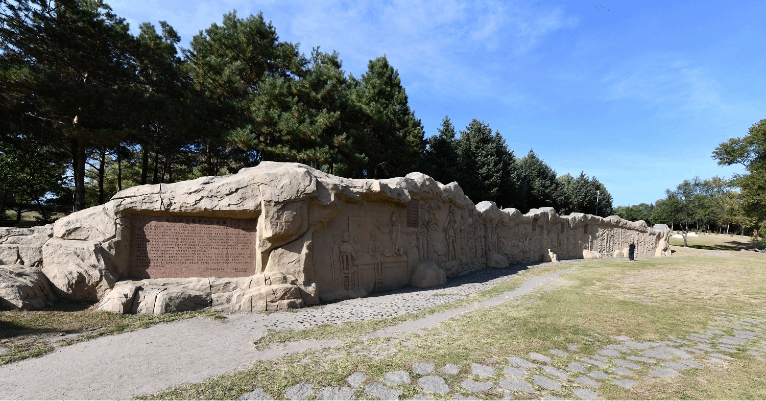 坐落于太阳岛风景区的东北抗联纪念园,是中国东北地区规模最大的抗日主题纪念教育基地。步入园内,以抗联战士组雕为核心的景观群瞬间将大家带回烽火连天的岁月——骑兵马队雕塑展现着抗联将士驰骋疆场的飒爽英姿,浮雕墙镌刻着一幕幕浴血奋战的壮烈场景,复原的抗联营地仿佛还留存着战士们取暖的篝火余温。起伏的地形模拟着当年的游击战场,参天古树见证着岁月变迁,蜿蜒流水诉说着英烈们抗击日寇的感人事迹。棵棵拥有80年树龄的“抗联树”,更是像沉默的老者,静静守护着那段厚重的历史。杨靖宇、赵尚志等抗联民族英雄浮雕群,将先烈的壮举定格,让自然景观与历史叙事深度交融,成为浸润人心的红色课堂。
