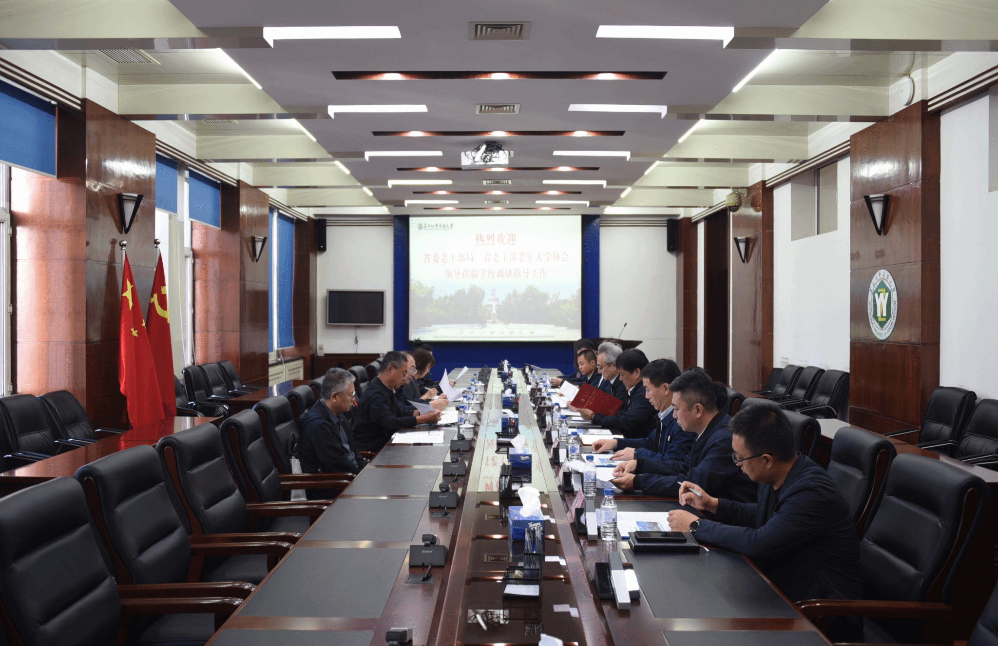 9月29日上午,中国老年大学协会副会长、省委组织部副部长、老干部局局长于志伟,省老干部老年大学协会会长申林一行5人来校,就学校贯彻落实全省老干部局长会议精神、助力老年教育发展情况开展专题调研。学校党委书记赵炜明主持调研座谈会并作工作汇报,党委副书记尹占军、副校长张洋出席会议。