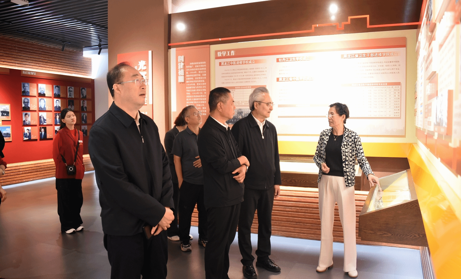 在学校老年志愿者讲解下,调研组一行参观校史馆