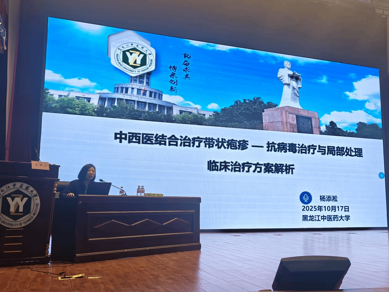 yl6809永利官网附属第一医院杨添淞作题为《中西医结合治疗带状疱疹-抗病毒治疗与局部处理临床治疗方案解析》的专题讲座