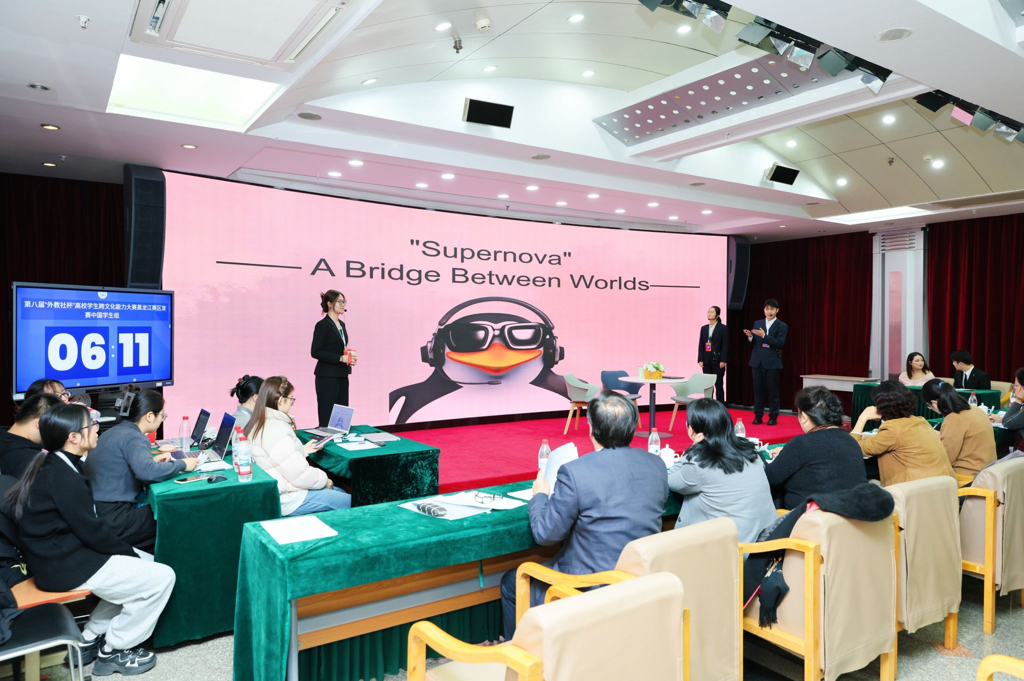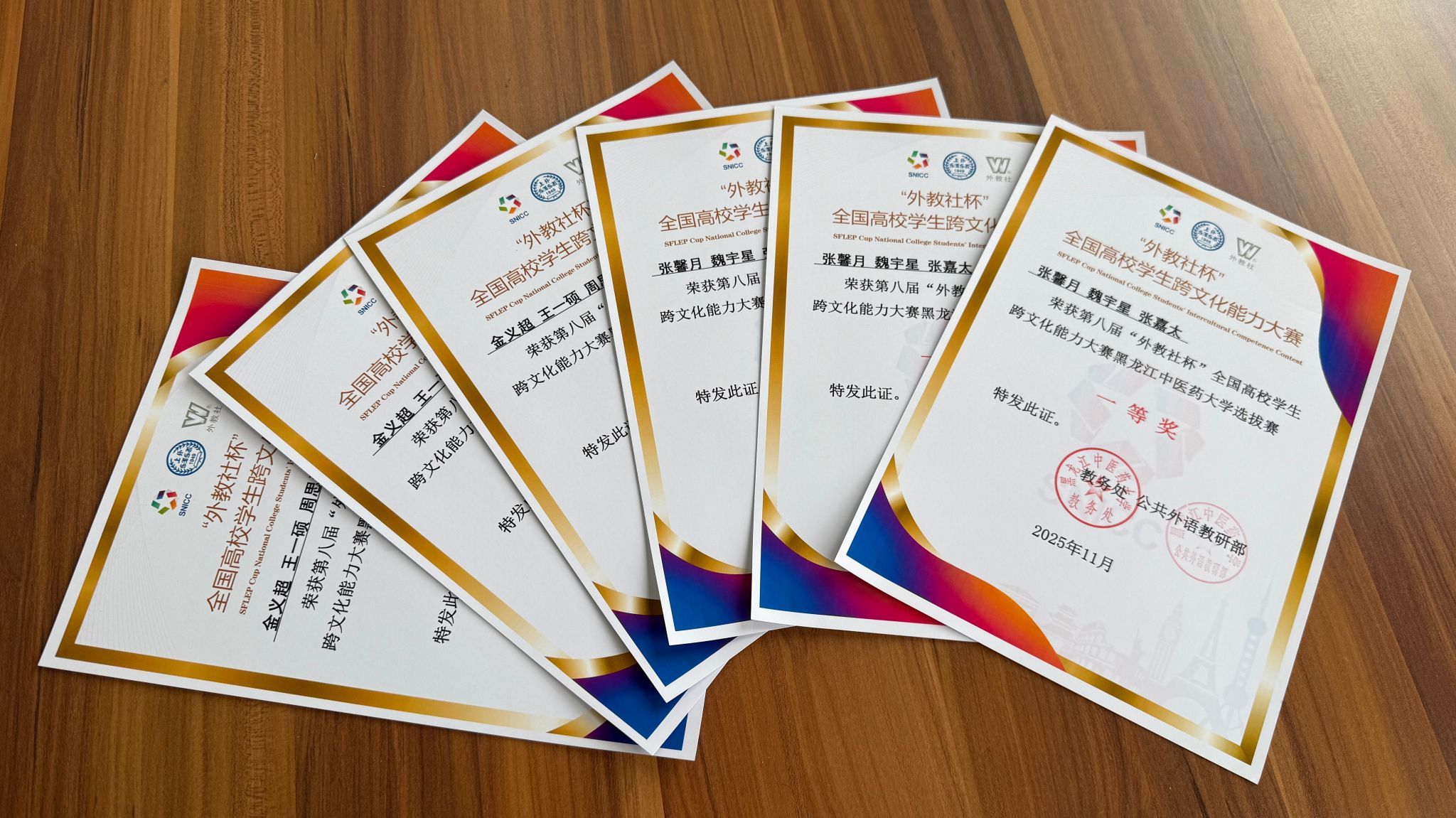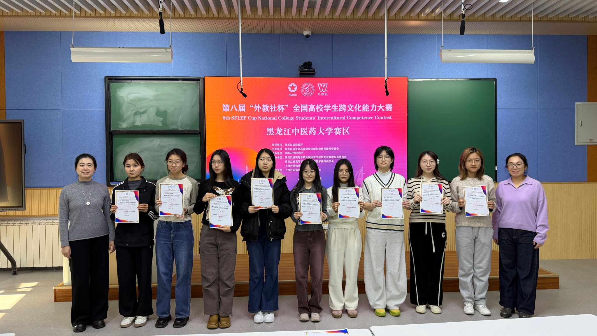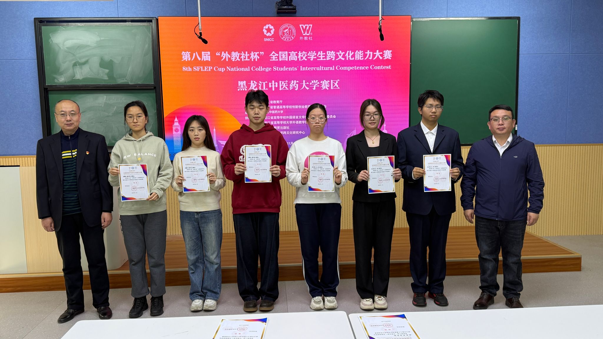 11月15日至16日,第八届“外教社杯”全国高校学生跨文化能力大赛在黑龙江大学举行,由我校选派的2024级中医学专业张馨月、2024级中药学(实验班)专业周思汎、2025级中医学(5+3一体化)专业张嘉太3名选手组成的团队,与来自全省高校的37支代表队同场竞技,最终荣获省级赛事的三等奖。