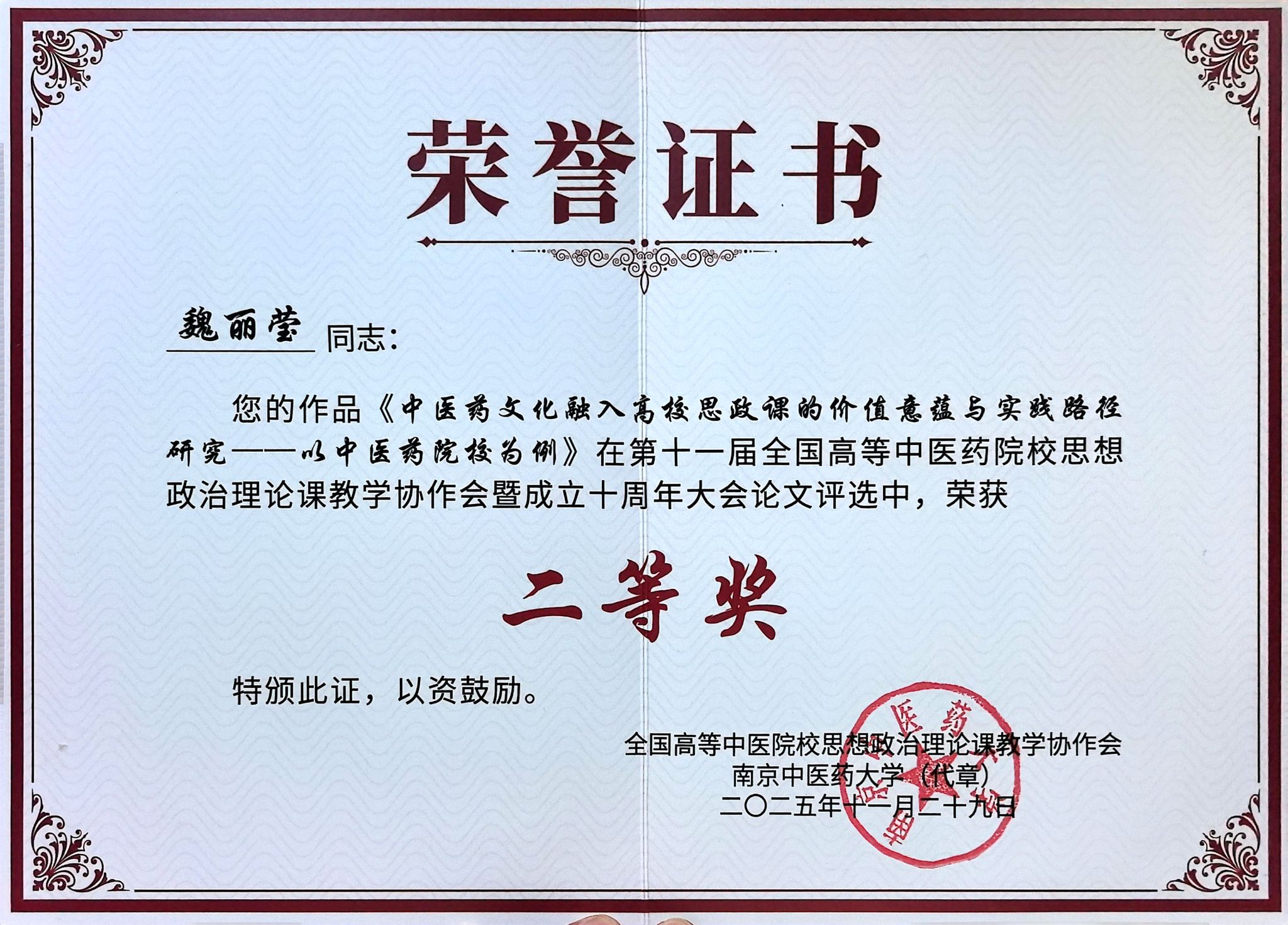 马克思主义学院教师杨溢的论文《中国式现代化视域下中医药传承创新发展的路径探析》在大会论文评选中荣获特等奖。