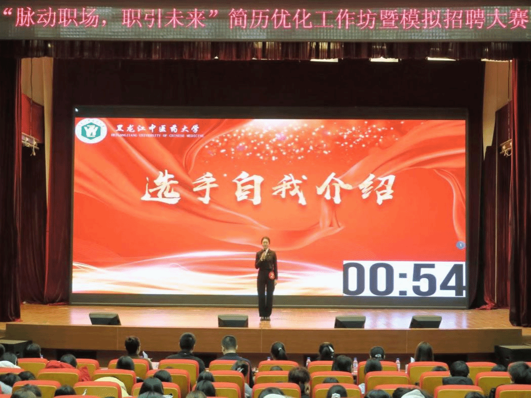 随后,紧张激烈的模拟招聘大赛环节正式拉开帷幕。20位决赛选手依次登台,围绕“医药信息专员”“中医师”“针灸科医生”“科研助理”“康复治疗师”“QA质量保证工程师”等涵盖医疗、研发、营销、管理等多个领域的意向职位展开角逐。经过近两个小时的比拼, 2021级针灸推拿学专业于明新、2022级康复治疗学专业刘艳玲获一等奖。