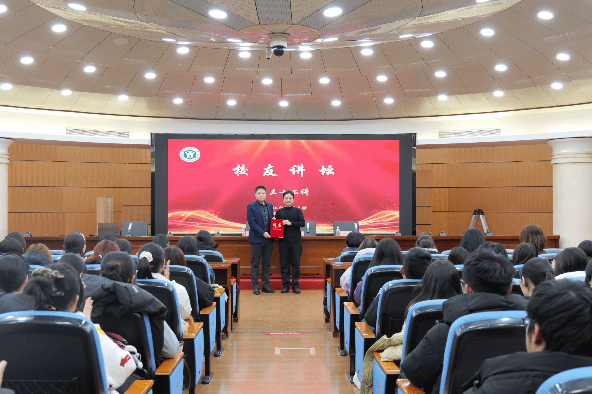 张洋为周海纯校友颁发“大学生就业创业导师”聘书